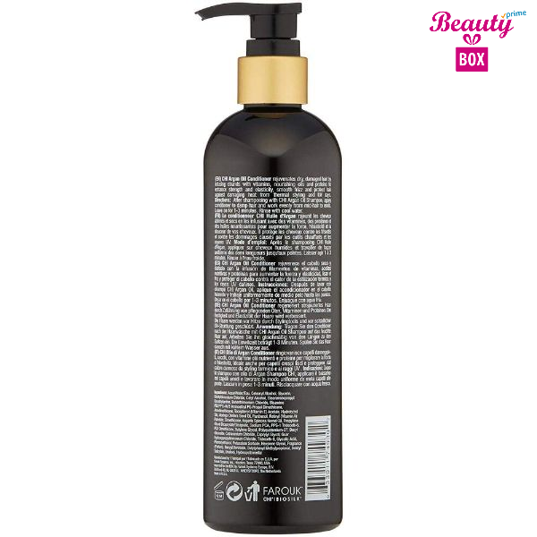 CHI argan oil conditioner rejuvenates dry damaged hair by infusing strands with vitamins, nourishing oils and proteins to enhance strength and elasticity, smooth frizz and protect hair against damaging heat from thermal styling and UV rays.