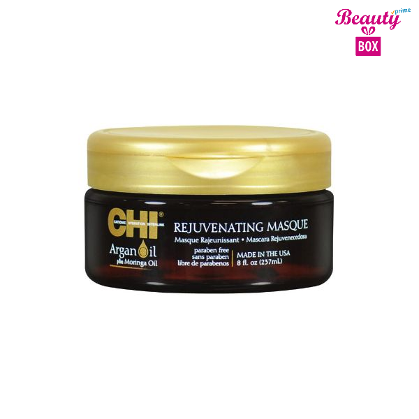 - CHI Argan Oil Rejuvenating Masque 237ml is a mask with argan oil and moringa oil.