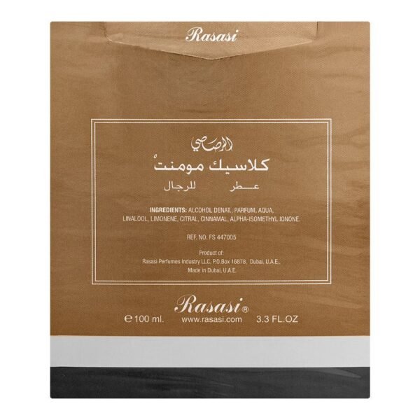 - Rasasi Classic Moment EDP For Men: Timeless Aromatic Woody Spicy Eau De Parfum.