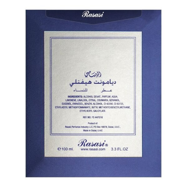 - Rasasi Diamonte Heavenly EDP For Women: Luminous Floral Fruity Musky Eau De Parfum.