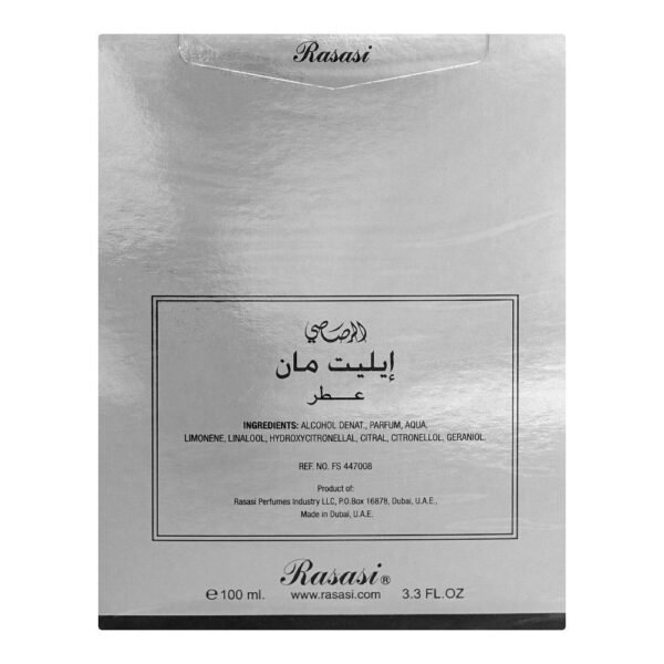 - Rasasi Elite EDP For Men: Premium Woody Leather Spicy Eau De Parfum.