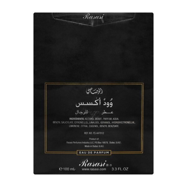 - Rasasi Wood Excess EDP For Men: Intense Woody Spicy Oriental Eau De Parfum.